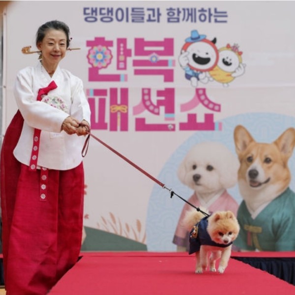 한복을 곱게 차려입고, 반려견 딩꾸와 함께 걷는 붉은 무대 위,마치 한 편의 동화 속 주인공이 된 듯 행복했습니다.